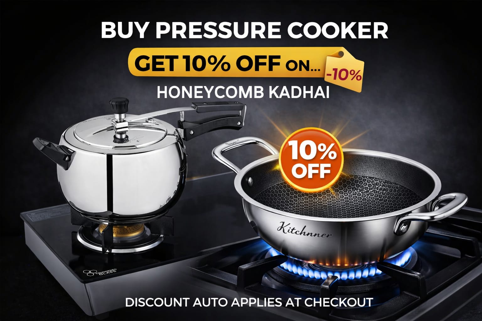 Upgrade your kitchen with premium cookware this festive season. Enjoy 20% OFF on select items and special combo savings on cooker and honeycomb kadhai purchases.